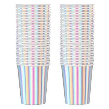 Iridescent Paper Cups 9 oz [50 pack] Disposable Coffee Cup Hot Cold Drinks Tea Water Milk Juice Beverages Holographic Rainbow Party Decorations for Picnic Home Birthday Wedding Anniversary Christmas