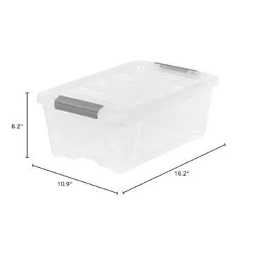 IRIS Buckle Up Storage Box - 12.9 Quart Clear Containers, 4 Pack