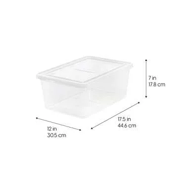 IRIS USA 17 Qt Clear Storage Box, BPA-Free Plastic Stackable Bin with Lid, Containers to Organize Shoes and Closet Shelves, Classroom Organization Teacher Tools, Game Storage, 12 Pack