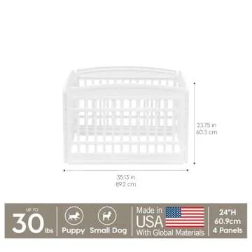 IRIS USA 24" Dog Playpen, 4-Panel Pet Playpen, Puppy Playpen, Indoor/Outdoor Dog Pen, 35 x 35 x 24, Foldable, Fold It Down, Easy Storing, Customizable, White