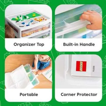 IRIS USA 3-Tier Scrapbook Storage Unit with Organizer Top, Fits 12" x 12" Papers, for Tools Office Art and Craft Supplies Desktop Organizer Built in Handle, White/Clear