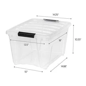 IRIS USA 32 Qt Stackable Plastic Storage Bins with Lids, 6 Pack - BPA-Free, Made in USA - See-Through Organizing Solution, Latches, Durable Nestable Containers, Secure Pull Handle - Clear