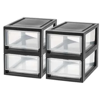 IRIS USA 6 Qt. Plastic Drawer Storage Organizer Stacking Drawers, 4-Pack, Stackable Unit with Sliding Drawer for Clothes Bedroom Kitchen Under Sink Pantry Craft Room Bathroom Dorm Office, Black