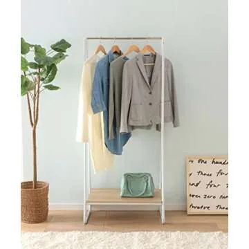 IRIS USA Garment Rack with Wooden Shelf, Clothes Racks for Closet Organization, Plant Stand, Frost White