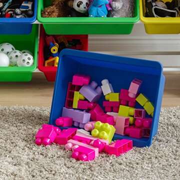 Show more Transform your chaotic spaces into neat havens with the IRIS USA Large Multi-Purpose Plastic Storage Bins. This vibrant 4-pack is designed not only for maximum organization but also to infuse any room with a splash of color. Each container is crafted from durable thick plastic, ensuring they withstand the demands of everyday use. The open-top design makes accessing your stored items a breeze, allowing you to quickly identify and retrieve toys, craft supplies, clothing, or any small items that need a home. These bins are perfect for organizing not just at home but also in daycare and school settings, showcasing their exceptional versatility.