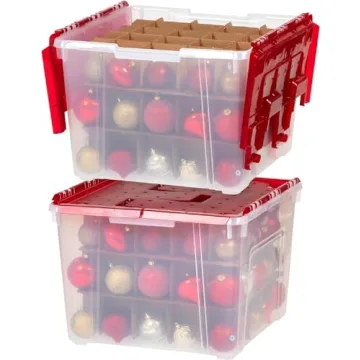 IRIS USA Ornament Storage Box - Secure, Stackable Holiday Decor Organizer