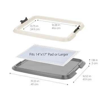 IRIS USA Pee Pad Holder, Small Puppy Pad Holder, Secured Latches, Non-Skid Rubber Feet, High Polish Finish for Easy Cleaning, Leak Protection Indoor Potty Tray, Fits 14"x17" Pad or Larger, Dark Gray