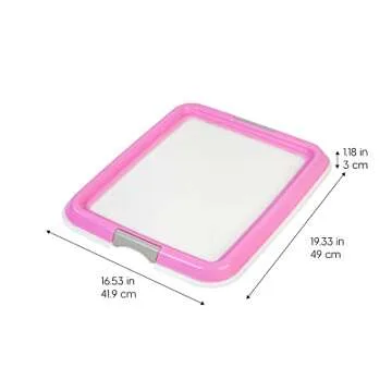 IRIS USA Pee Pad Holder, Small Puppy Pad Holder, Secured Latches, Non-Skid Rubber Feet, High Polish Finish for Easy Cleaning, Leak Protection Indoor Potty Tray, Fits 14"x17" Pad or Larger, Pink
