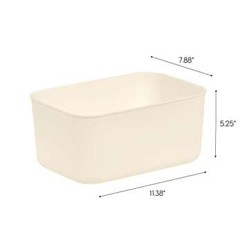 IRIS USA Plastic Basket Bin & Lid, Small, 4-Pack, Stackable Lidded Storage Organizer Bins for-Kitchen-Bathroom and Bedroom, Off White