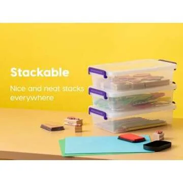 IRIS USA Plastic Storage Bins with Lids 6 Qt. Craft Organizers and Storage, Art Supply Storage Organizer, Arts and Crafts Organizer, Stackable and Secure Latch, Clear/Violet - 6 Pack