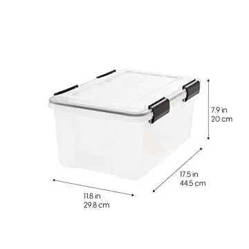 IRIS USA WeatherPro 19 Qt Storage Bins with Lids, 6 Pack, BPA-Free Plastic Gasket Box with Tight Latch and Seal, Stackable Nestable Tote Tub - Clear/Black