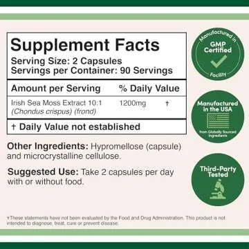 Irish Sea Moss Capsules: Nutrient-Rich Superfood for Health Support | 180 Count