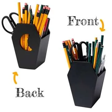 IRISVITA Small Coffin Pen Holder for Desk (Redesigned), Spooky Makeup Brush Holder, Gothic Decor for Home, Black Pencil Holder for Desk, Goth Room Decor, Mini Goth Vanity Organizer