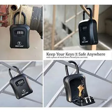 Iron Lock® - Key Lock Box Portable and Wall Mounted with Removable Shackle Indoor Outdoor Waterproof 4 Digit Combination with Resettable Code with A B Switch Key Lockbox for Outside Hold 5 Spare Keys