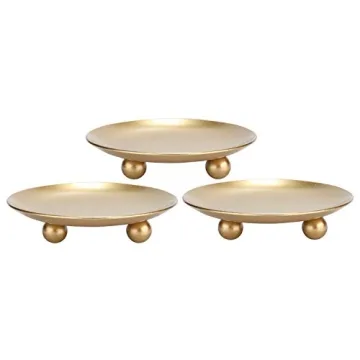 Elegant Gold Iron Plate Candle Holders Set of 3 for Pillar Candles