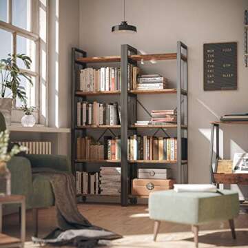 IRONCK Industrial Bookcase, 5-Tier Bookshelf for Living Room, Bedroom, Farm House, Kitchen, Office Decor and Storage