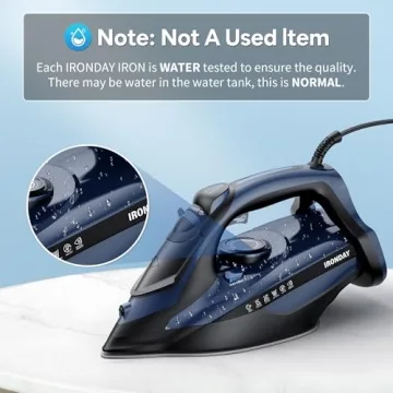 The IRONDAY Steam Iron for Clothes is an essential tool for anyone looking to achieve impeccable ironing results at home or in a professional setting. This powerful 1700W iron guarantees a speedy and efficient ironing experience with a remarkable 20 seconds fast heating feature, ensuring that you're ready to tackle wrinkles in no time. With an impressive 15.21oz (450ml) water tank, you won't need to stop frequently for refills, providing continuous steam...