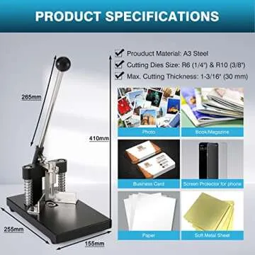 IRONWALLS Corner Rounder Punch Heavy Duty, 1.2”/30mm Thickness Manual Corner Rounder Paper Punch Cutter with R6mm R10mm Interchangeable Dies for Heavy Cardstock, Plastic, Aluminum Sheet