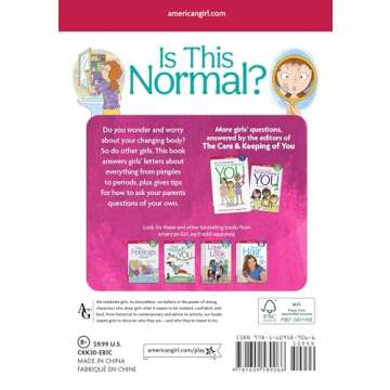Show moreEmpower adolescent girls with expert advice! "Is This Normal? Expert Answers for Girls" by American Girl is a crucial resource for pre-teens and young teens navigating the often confusing journey of adolescence. This insightful book is crafted by the trusted editors of the acclaimed Care & Keeping of You series. It offers a safe space filled with real questions from girls just like them, providing judgments-free answers and uplifting insights to foster self-acceptance during these formative years.