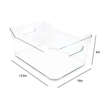 Show more Introducing the Isaac Jacobs 2-Pack Large Clear Storage Bins, your perfect partner in achieving an impeccably organized home. These bins aren't just any storage solutions; they embody the fusion of modern aesthetics and unparalleled functionality. Beautifully crafted from high-quality, BPA-free plastic, their transparent design allows for easy visibility of contents, making it simple to locate items at a glance. With dimensions of 13.5” L x 10” W x 6” H, they are perfectly sized to fit snugly into cabinets, shelves, and tight spaces, enabling you to maximize storage efficiency while maintaining a clean look.
