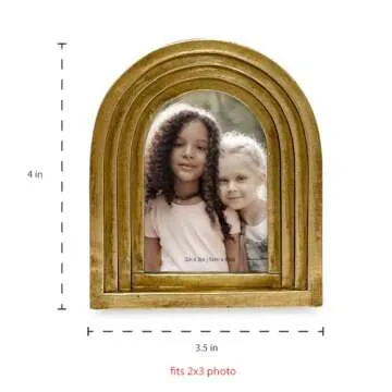 Show more Unveil the magic of memories with the Isaac Jacobs 2x3 Vertical Gold Arc Resin Picture Frame, a delightful addition to any home decor. Designed with a unique layered arching shape, this frame transforms cherished moments into art, beautifully drawing attention to your favorite photos of family, little ones, and memorable gatherings with friends. Its captivating design is not only visually stunning but also functional, serving as the perfect vessel for your treasured snapshots. Whether placed on a desk, shelf, or as part of a stylish gallery wall, this frame invites nostalgic reflections and heartfelt memories into your living spaces.