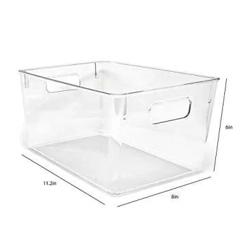 Isaac Jacobs 3-Pack Large Clear Storage Bins with Handles, Plastic Organizer for Home, Room, Office, Fridge, Kitchen/Pantry Non-Slip Container Set, Food Safe, BPA Free (3-Pack, Large)