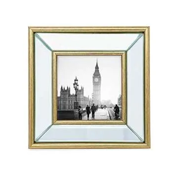 Show more Introducing the Isaac Jacobs 4x4 Gold Beveled Mirror Picture Frame, a stunning piece designed to elevate your home décor with its elegant craftsmanship and timeless appeal. This classic frame features a beautifully piped border that outlines a glimmering mirrored surface, creating a bright and inviting atmosphere in any room. The unique deep slant cuts add dimension and sophistication, allowing your favorite photos to take center stage. With a distressed metallic finish around the rounded edges, this frame combines modern luxury with vintage charm, making it a perfect addition to your living space.