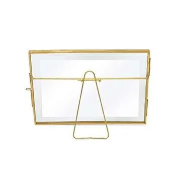 Isaac Jacobs 4x6, Antique Gold, Vintage Style Brass and Glass, Metal Floating Picture Frame (Horizontal) with Locket Closure, for Photos, Art, More, Tabletop Display (4x6 Antique Gold)