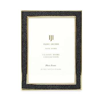 Isaac Jacobs 5x7 Black Leather with Gold Metal (Vertical & Horizontal) Picture Frame, Shagreen Border w/Black Fabric Easel, Wall-Mountable, Made For Tabletop, Photo Gallery (5x7, Black W/Gold)