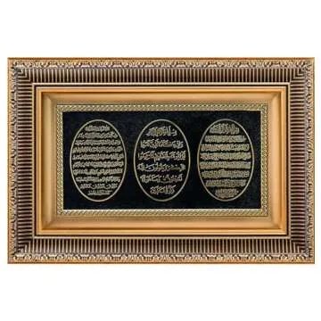 Islamic Home Decor Framed Hanging Wall Art Muslim Gift Ayatul Kursi, Nazar Dua, and Bereket Dua 11 x 17in (Gold)