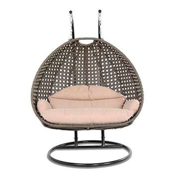 Island Gale Luxury 2 Person Outdoor Patio Hanging Wicker Swing Chair ( X-Large, Latte Rattan/Latte Cushion)