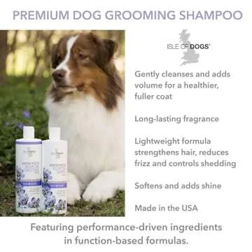Show moreIntroducing the ultimate grooming solution for your furry friend – our luxurious Isle of Dogs Keratin Volume Shampoo. This gentle, sulfate and paraben-free formula is specifically designed to enhance the beauty of your dog's coat. Infused with keratin, this shampoo works wonders to make your pup's coat look and feel thicker, fuller, and incredibly plush. Not only does it strengthen the hair, ensuring a stunning shine, but it also adds a lovely bounce.
