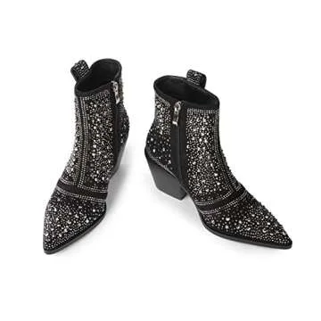 ISNOM Rhinestone Cowboy Boots for Women - Stylish & Comfortable Short Ankle Boots