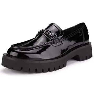 ISOMEI Women's Chunky Heel Loafers - Stylish Patent Leather Shoes