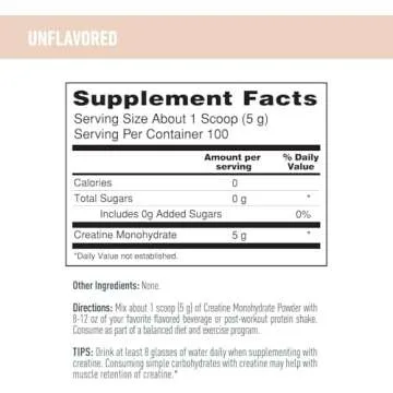 Isopure 100% Pure Creatine Monohydrate Powder, Sugar Free, Unflavored, 5g Creatine Monohydrate Per Serving, 1.1 Lbs, 100 Servings