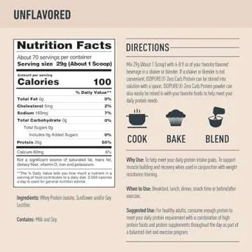 Show moreIntroducing the Isopure Zero Carb 100% Pure Whey Isolate Protein Powder, the ultimate addition to your daily health regimen. This remarkable protein powder, available in a generous 4.5 lb container with a total of 50 servings, provides a powerful 25 grams of high-quality whey protein isolate per serving, making it an ideal supplement for both men and women striving to maintain a high-protein intake. With absolutely no flavor added, you have the freedom to mix this versatile powder with any beverage of your choice, catering to your personal taste preferences while ensuring you meet your daily nutrition goals.