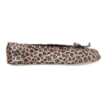 isotoner Women's Satin Ballerina Slippers with Soft Tie Bow and Suede Sole, Cheetah, 8-9