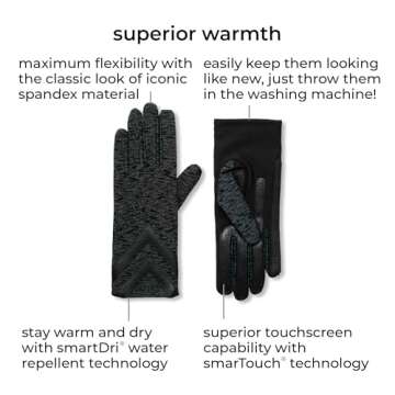 isotoner Womens Spandex Recycled Touchscreen Cold Weather Gloves with Warm Fleece Lining and Chevron Details