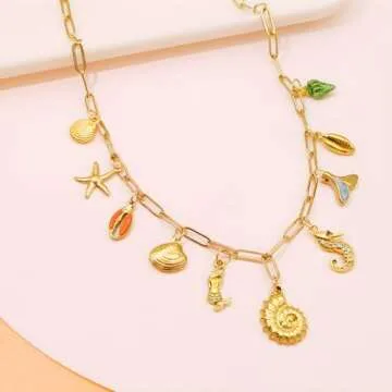 iSPECIAL 18K Gold Paperclip Charm Necklace - Celestial & Beach Theme Jewelry