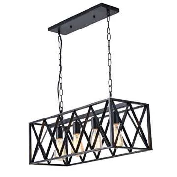 Show moreElevate your home décor with the ISRAMP 4 Lights Pendant Lighting, a stunning piece that combines industrial charm with modern elegance. Perfectly designed to enhance any kitchen or dining space, this metal matte black chandelier makes a statement while providing abundant lighting. Featuring four adjustable Edison bulbs (sold separately), it allows you to customize the brightness and ambiance of your room according to your preferences. With its simple yet stylish design, it is a versatile addition that seamlessly integrates into various styles, from modern to farmhouse themes.