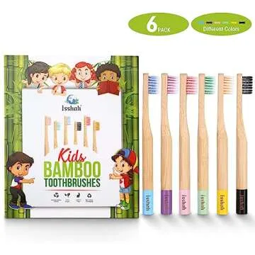Show more Introducing the Isshah Kids Bamboo Toothbrushes – a perfect blend of sustainability, functionality, and fun! Crafted from 100% natural bamboo, these toothbrushes are not only biodegradable but also help reduce plastic waste, making them an eco-friendly choice for your child's oral hygiene routine. Each pack contains six vibrant designs, ensuring that brushing time is enjoyable and engaging for your little ones. With soft nylon bristles designed to be gentle on tender teeth and gums, your child can brush effectively without discomfort, fostering a healthy and lasting brushing habit from an early age.