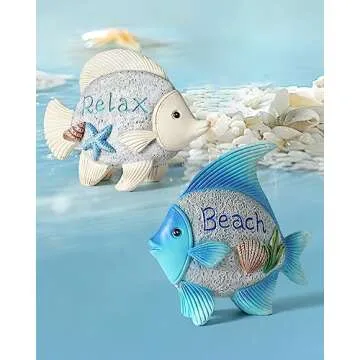 iStatue 2-Pack Resin Fish Figurines with Beach and Relax Themes - 4.4'' Cute Coastal Nautical Tabletop Home Decor for Bathroom, Living Room and More (Fish)