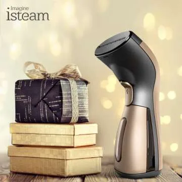 iSteam Steamer for Clothes [Luxury Edition] Powerful Dry Steam. Multi-Task: Fabric Wrinkle Remover- Clean- Refresh. Handheld Clothing Accessory. for All Kind of Garments. Home/Travel [MS208 Gold]