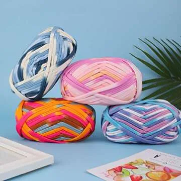 iSuperb 4 Pack Knitting Yarn Fabric Cloth T-Shirt Yarn Carpet Yarn for DIY Knitted Fabric Art Basket Bag (D)
