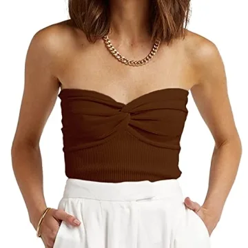 Show more Introducing the ISZPLUSH Women's Strapless Crop Top, where style meets comfort! This trendy piece is crafted from a blend of 95% Polyester and 5% Elastane, ensuring a super soft, lightweight, and skin-friendly experience. Whether you're stepping out for a casual day, hitting the beach, or dancing the night away at a party, this crop top guarantees you stay comfortable, elegant, and confident throughout the day and night. The unique twisted knot front adds a distinctive flair, while the sweetheart neckline enhances your feminine silhouette. Available in a chic Coffee color, it's the perfect gift for any fashion-forward woman looking to elevate her wardrobe.
