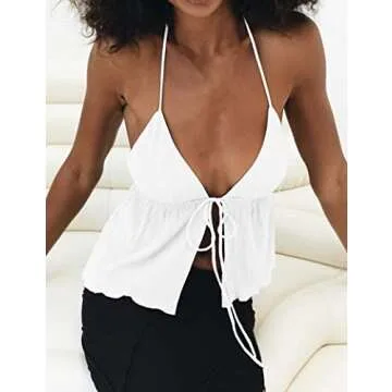 Show moreIntroducing the perfect addition to your summer wardrobe - our charming ISZPLUSH Women Sexy Halterneck Y2K Tie-up Tank Top. Crafted from a delightful blend of polyester and spandex, this top is designed with an emphasis on exceptional softness and stretch, ensuring a snug yet comfortable fit that moves effortlessly with you. Whether you're dressing casually for a sunny day or looking to impress for a night out, this trendy crop cami top embodies the very essence of summer fashion vibes.