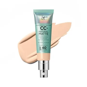 Show more Introducing the IT Cosmetics CC+ Cream Natural Matte Foundation, your ultimate solution for achieving a flawless complexion without sacrificing skin health. This innovative foundation is specifically tailored for oily skin types, yet its versatile formula accommodates combination, sensitive, and acne-prone skin as well. With a sweat-proof and long-lasting formula, you can enjoy a full coverage look that keeps shine at bay for up to 16 hours. It delivers essential sun protection, boasting an impressive SPF 40 without the dreaded white cast that some sunscreens leave behind. Not only is this foundation a makeup staple, but its skin care benefits are unparalleled, thanks to ingredients such as hyaluronic acid, lentil seed extract, and Air Licium that hydrate, balance, and nourish your skin throughout the day.