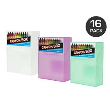 It's Academic Crayon Box with Hinged Lid and Snap Closure, Clear, Purple, and Green Plastic, 16-Pack (Colors May Vary)
