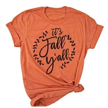 It's Fall Y'all Shirt Women Halloween T-Shirt Casual Short Sleeve Letter Funny Top Tee (XX-Large, Orange)