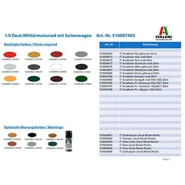 The Italeri 7403S 1/9 BMW R75 German Military Motorcycle with Sidecar is an exceptional model kit that brings history alive right on your workbench. This intricately detailed 1/9 scale model captures the essence of the iconic BMW R75 used during World War II. With a length of approximately 267 mm, this model stands out not only for its size but also for the meticulous engineering that Italeri is renowned for. The kit includes stickers for four different versions of the motorcycle,...
